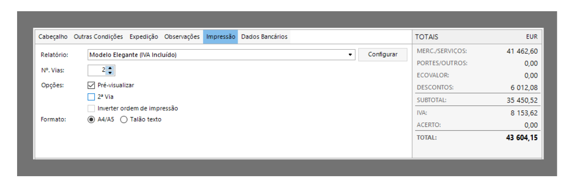 Relatório | Tipo de relatório a imprimir. Por omissão, é exibido o que está definido na tabela dos documentos de venda. |