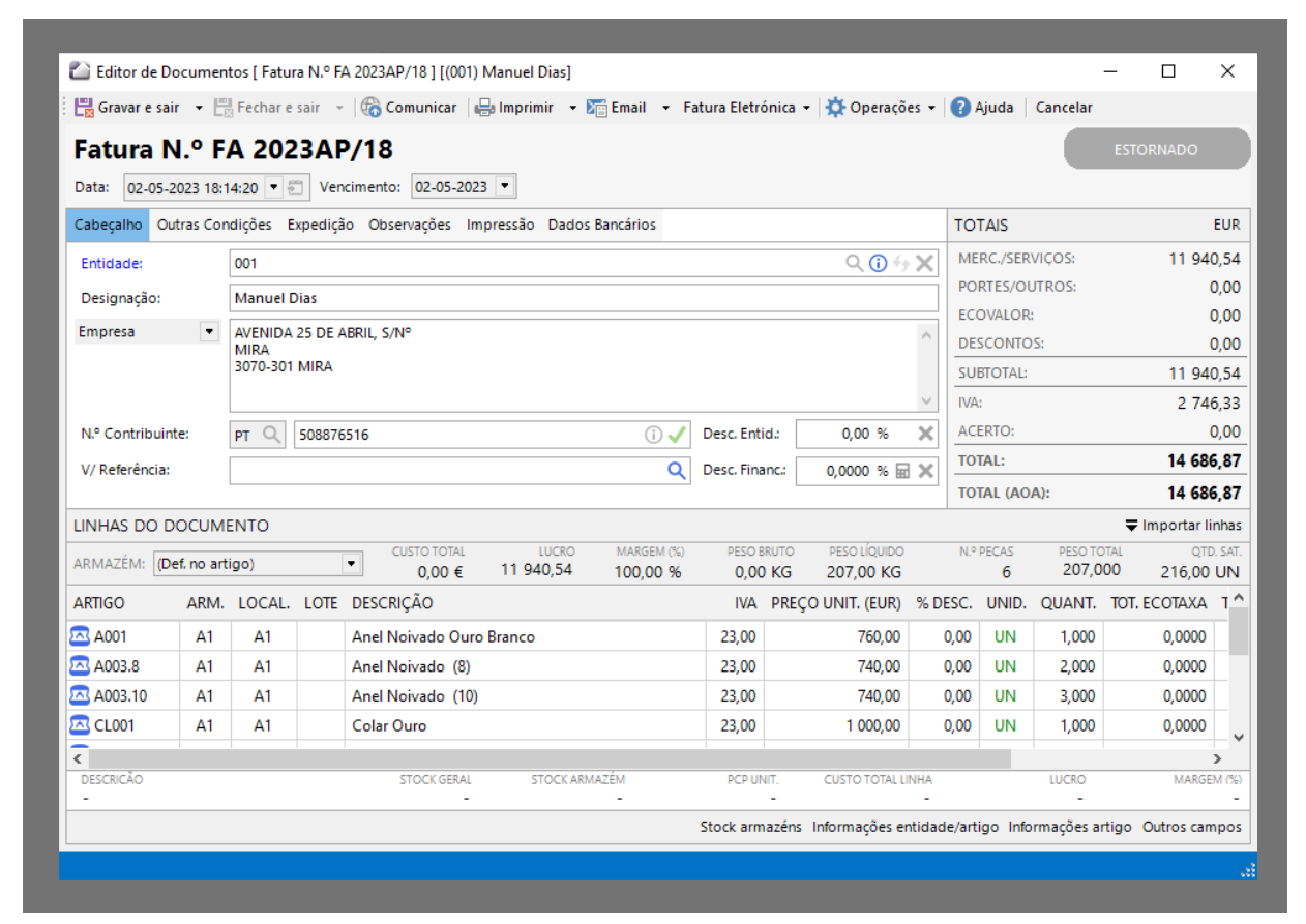 O editor de documentos é um formulário onde se pode preencher toda a informação relacionada com uma venda ou compra.