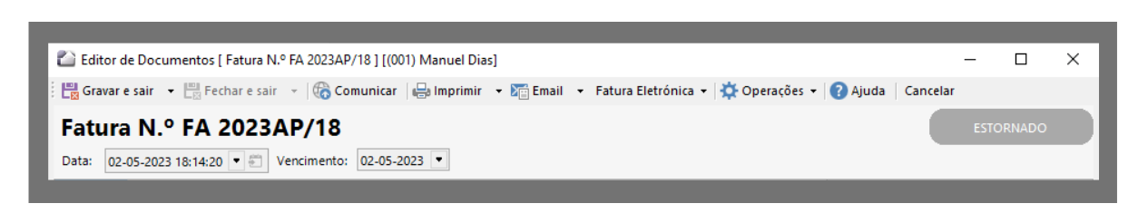 Fechar e sair | Ao fechar o documento, o sistema guarda o documento e identifica-o com a série/número. A partir desse momento, toda a informação de natureza fiscal não poderá ser alterada. Apenas a informação de natureza não fiscal, como por exemplo atribuir um vendedor ao documento, escrever observações, etc. |