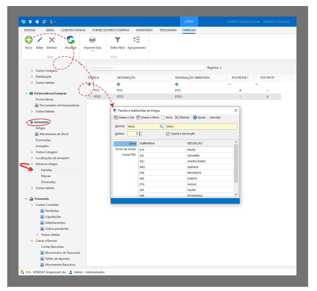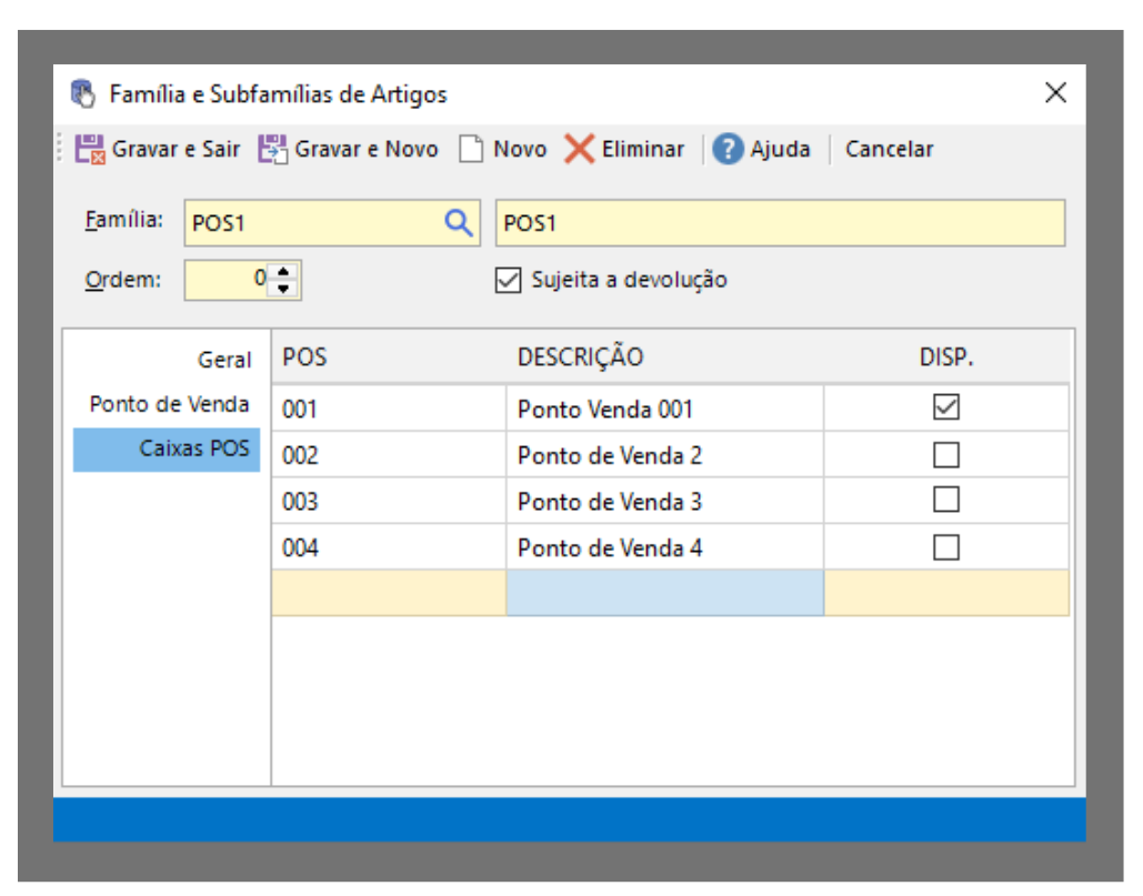 São um agrupamento de artigos, que pode criar em qualquer momento. Uma família poderá estar subdividida em subfamílias e cada artigo apenas pode pertencer a uma família e subfamília.