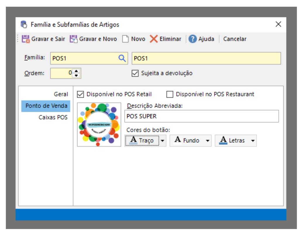 Permite configurar se a família vai ser exibida ao painel de atalhos rápidos no módulo WISEDAT POS Retalho e WISEDAT POS Restauração.