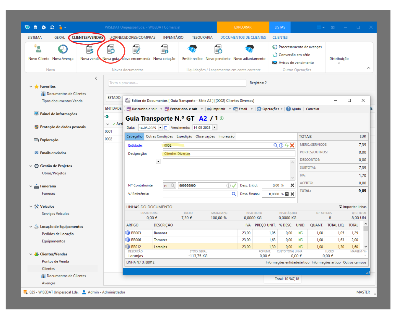 Emitir Guia de Transporte Global no WISEDAT Comercial
