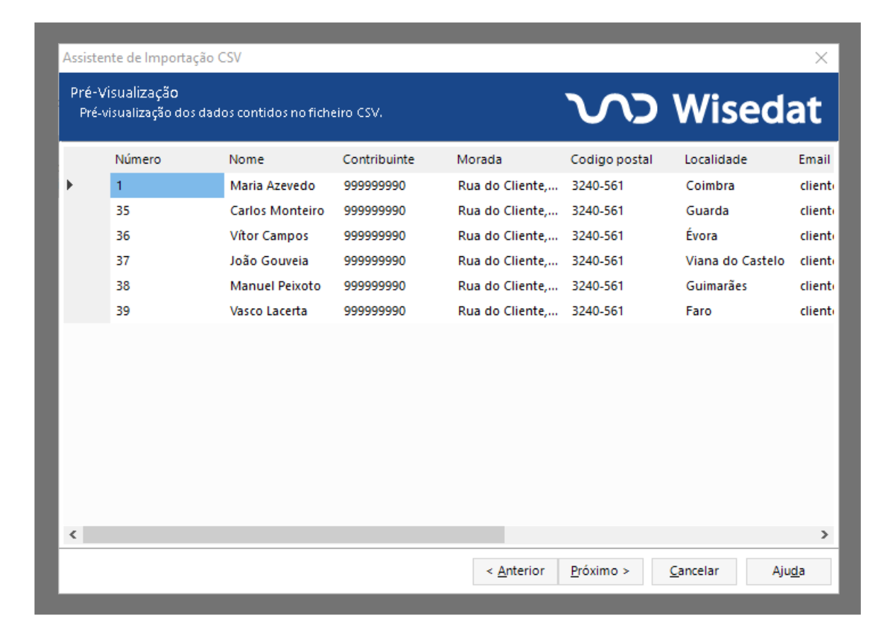 Importar dados é uma funcionalidade bastante útil, pois facilita o processo de inicialização ao sistema Wisedat, através da inserção na base de dados de clientes, artigos ou fornecedores provenientes de fontes externas.