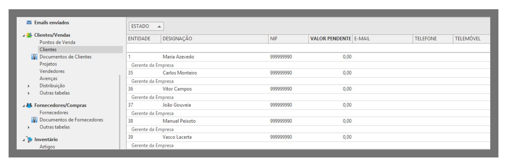 Após o processo de importação de clientes, aceda à listagem de clientes, atualize e verifique os vários campos importados.