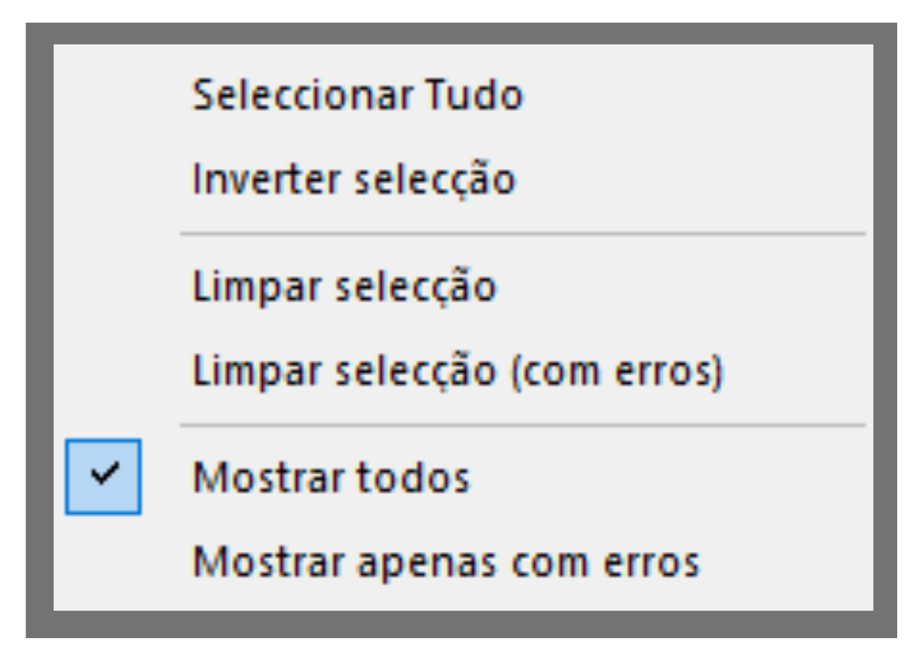 De modo a facilitar o processo de seleção existe um Menu de Contexto, que permite: