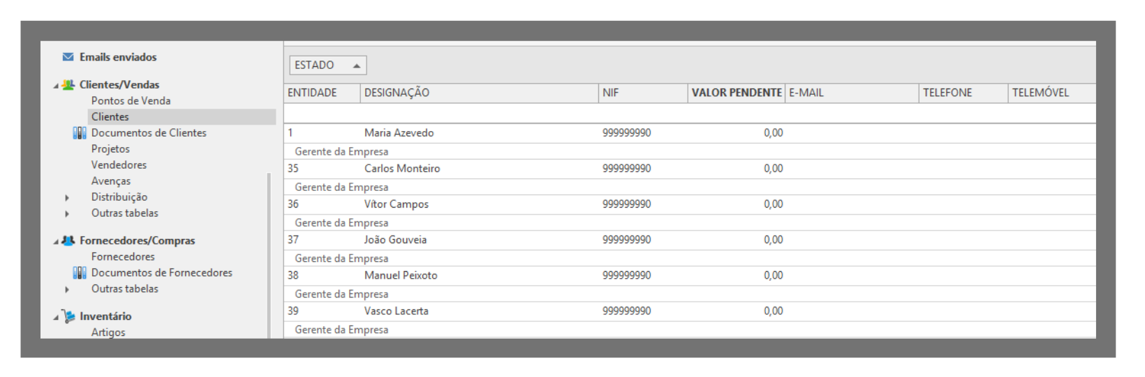 Quando termina a importação aceda às respetivas listagens, atualize e verifique todos os dados importados:
