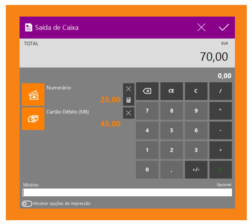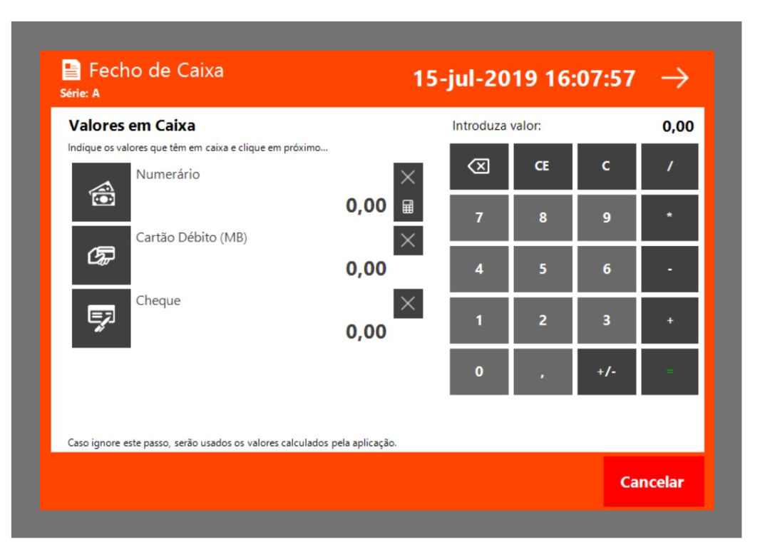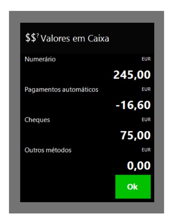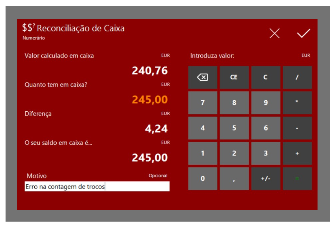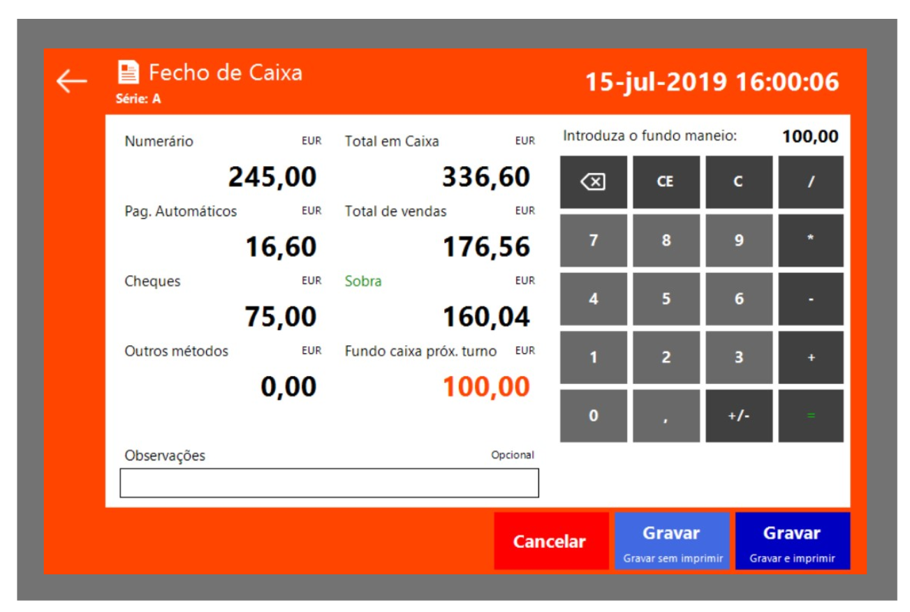- Será apresentado o valor predefinido de Fundo de caixa, no entanto pode alterar esse valor. (Consulte mais informações: Fundo de maneio)