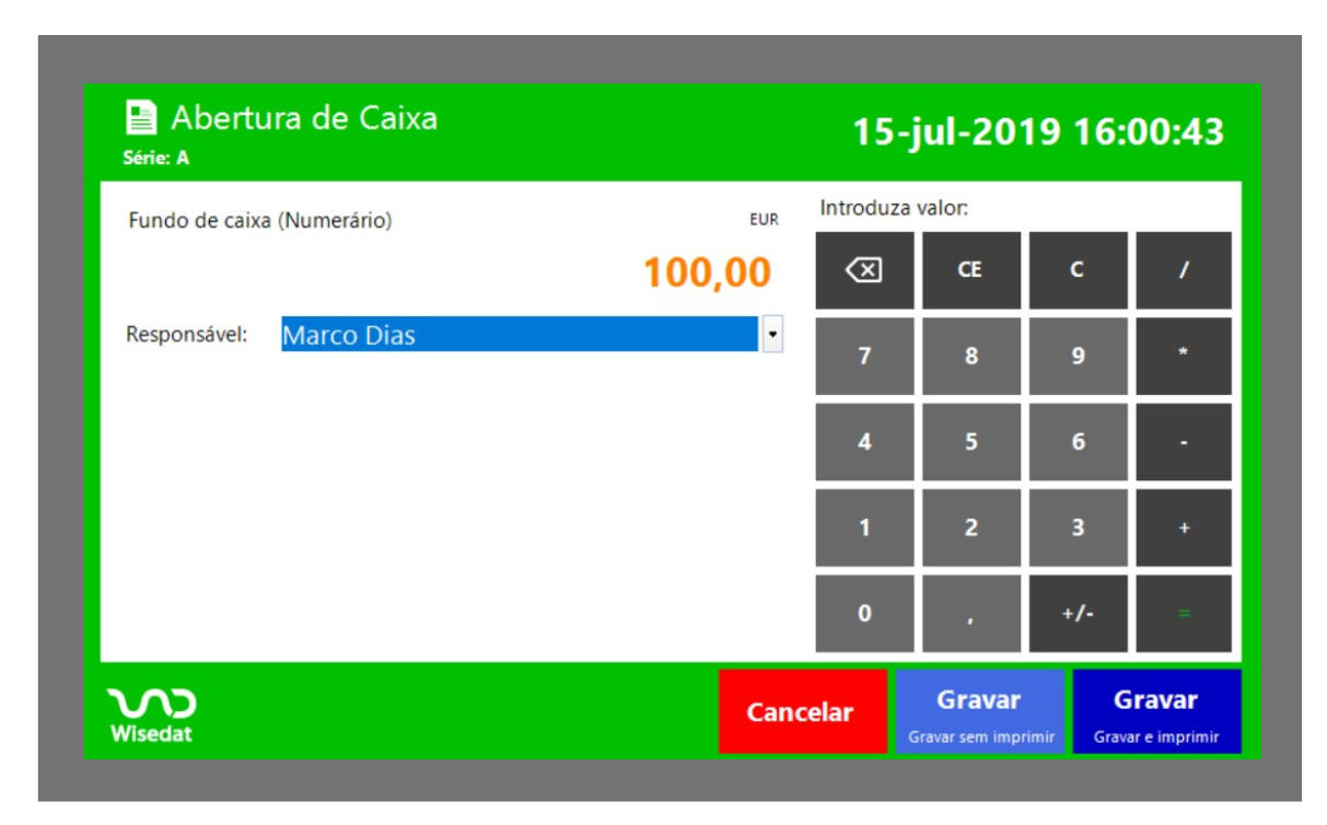 - É identificado o responsável por essa abertura de caixa, se pretender pode alterar o utilizador.