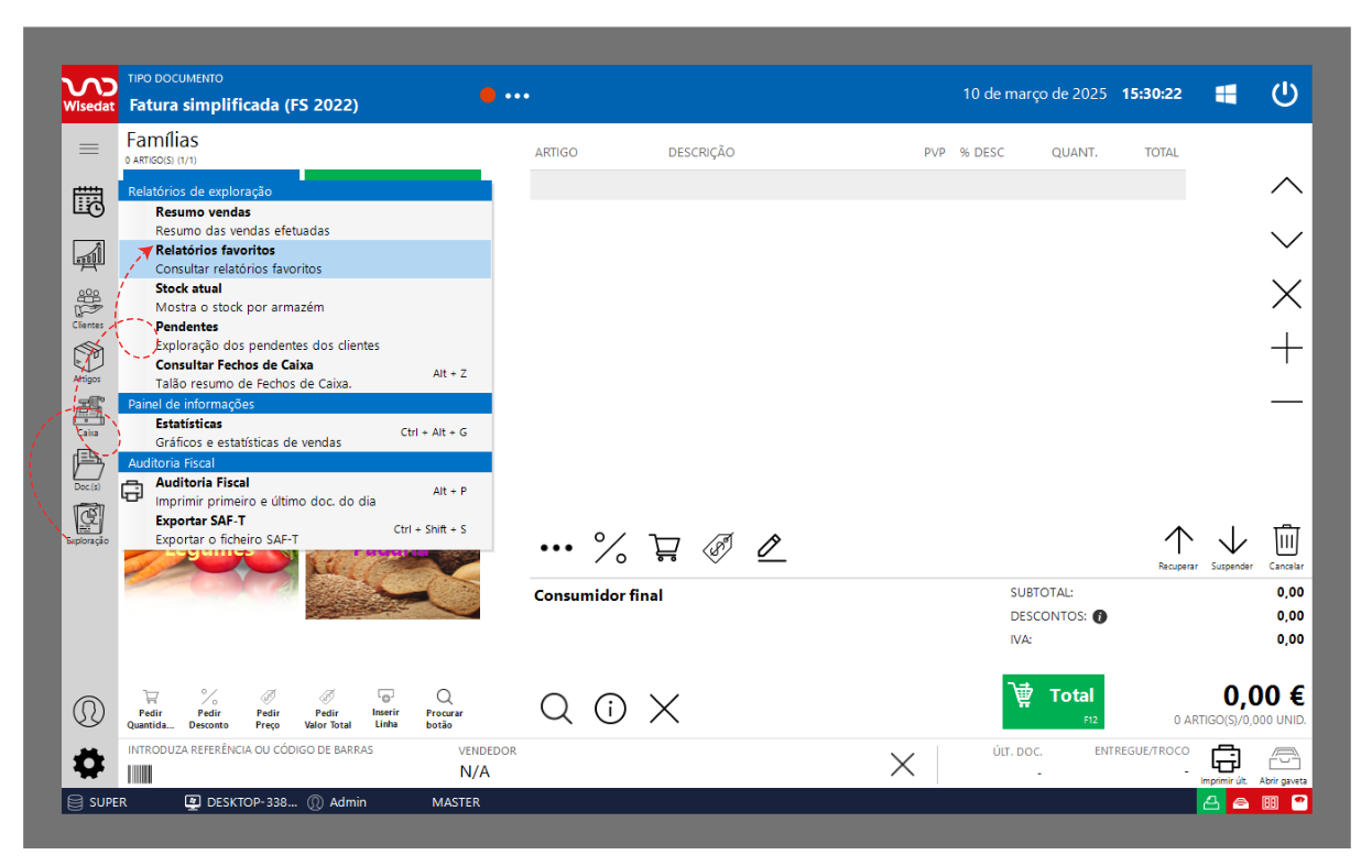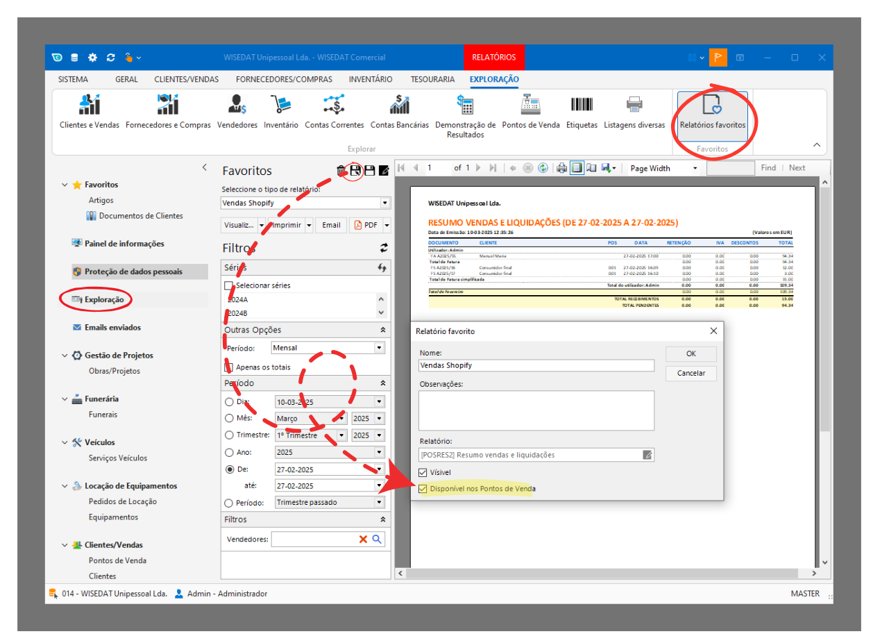 Consultar relatório favorito no WISEDAT POS Restaurant