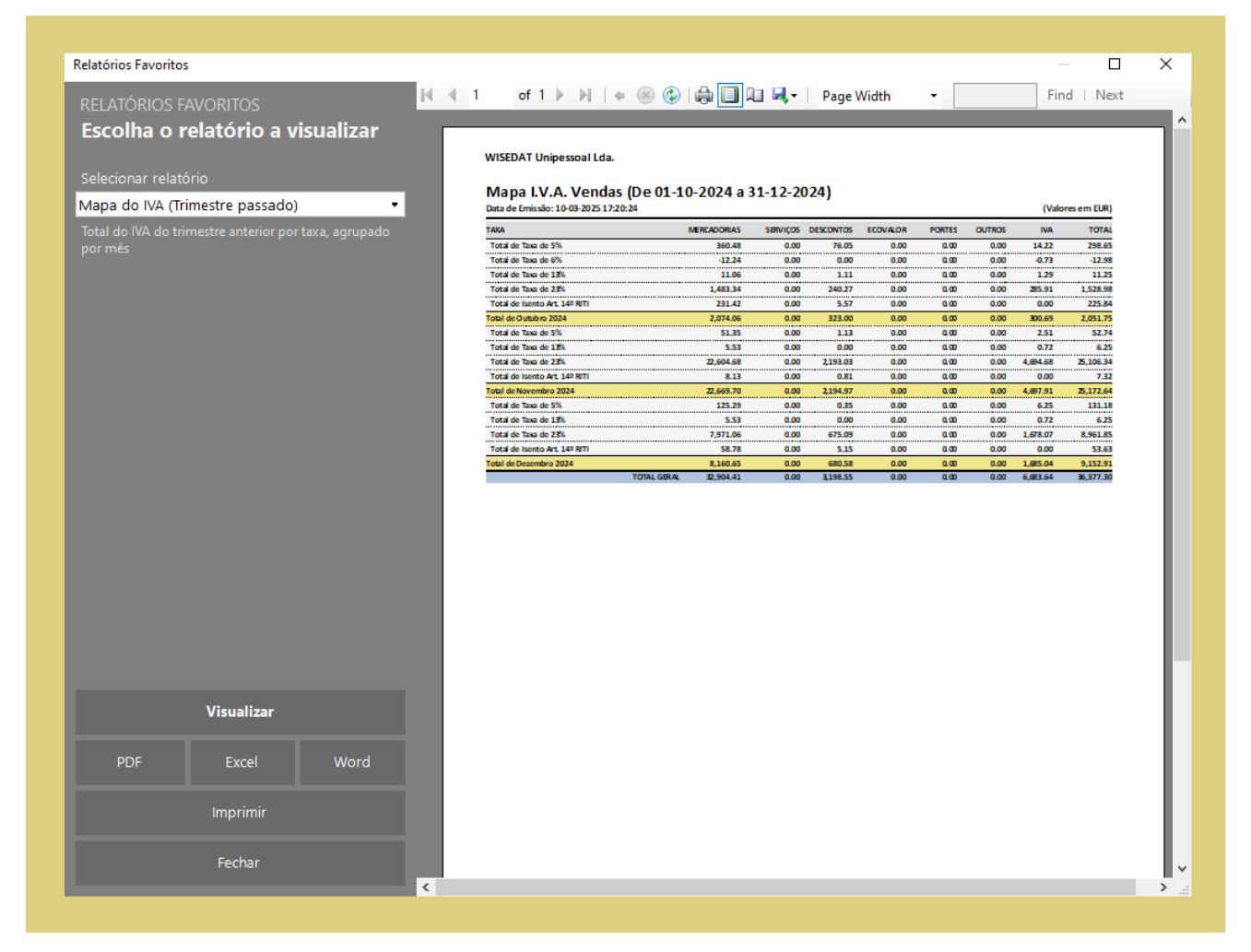 À semelhança do que acontece no backoffice, no POS também é possível exportar para PDF, Excel ou Word, e também Imprimir ou Prévisualizar.