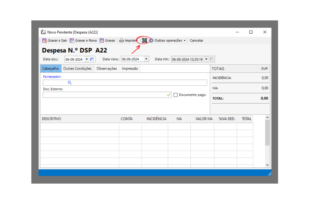 No editor do documento clique no ícone QRC de forma a importar a informação do documento original, em alternativa pressione F9.